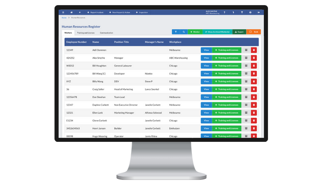 - Monitor training status across your organisation with a simple-to-use training matrix.